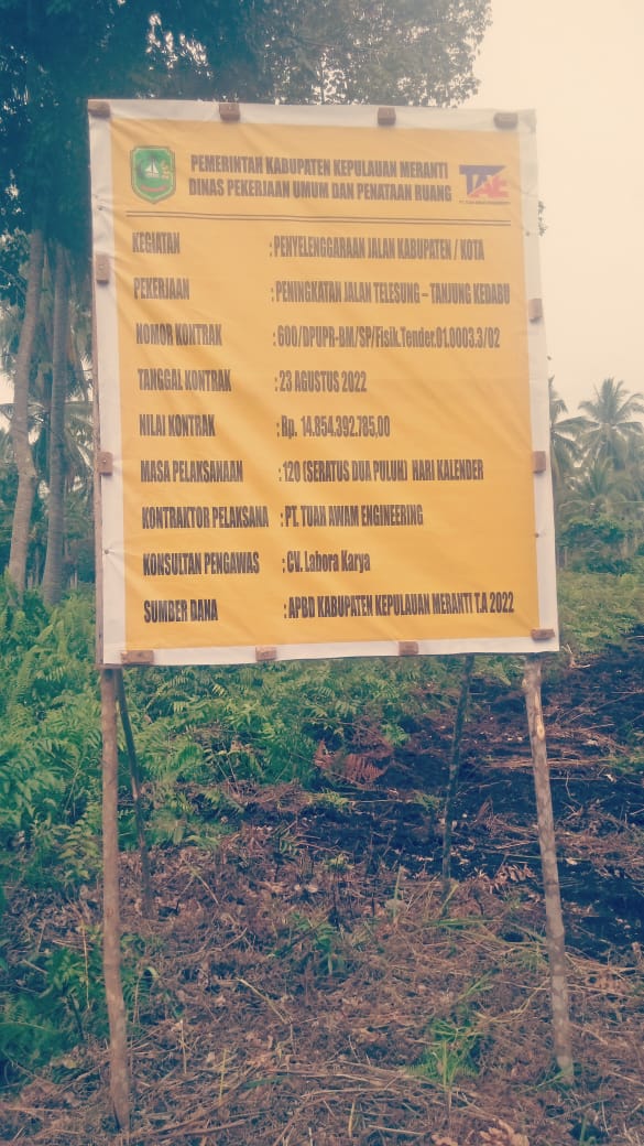 Proyek peningkatan jalan Poros Desa Telesung ke Desa Tanjung kedabu sepanjang 5 Km itu kini sedang dikerjakan , dengan anggaran sebesar Rp, 14,854,392,185,00, (Empat- belas Miliyar delapan ratus limapuluh empar juta tiga ratus sembilanpuluh dua seratus delapanpuluh lima rupiah) , sumber anggaran dari APDD Kabupaten Kepulauan Meranti.