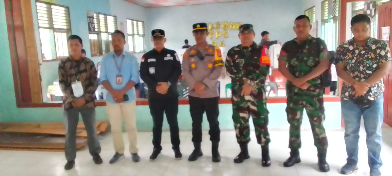 Camat Merbau Muhammad Nazir S.Pd.MSi bersama Kapolsek Merbau IPTU Jimmy Andre SH.MH, Danramil 06 Merbau Kapten Arh Efri Hardin Nasution S.Sos, secara bersamaan langsung bergerak memantau kondisi di setiap TPS di wilayah Kecamatan Merbau, Kabupaten Kepulauan Meranti, Rabu (27/11/2024) siang.